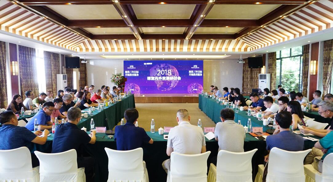 7月9日至11日,課堂內外召開2018年發展研討會,全體干部及參控股公司負責人等參加會議。會議以“聚焦三年目標、提升教育服務”為主題,圍繞課堂內外三年目標達成,從大區、郵發、市場等渠道升級及教育服務轉型,進行了深入研討。