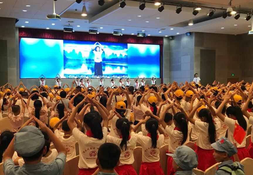 參觀結(jié)束后,孩子們在重慶科技館B區(qū)多功能廳進(jìn)行了文藝匯演。歌舞表演、朗誦、講解等豐富多彩的節(jié)目,不僅展現(xiàn)出了孩子們的多才多藝、天真爛漫,也展示了孩子們樂觀奮進(jìn)、積極向上的精神面貌。尤其是來自武隆的孩子們精心編排的舞蹈《最好的未來-蘊(yùn)育夢想,放飛希望》,表達(dá)出了她們心里夢想的種子正在發(fā)芽,對未來充滿了希望和信心,贏得了一致贊賞。詩歌朗誦《曙光照亮中國》也給觀眾留下了深刻印象,飽含深情的文字,激發(fā)起孩子們以祖國復(fù)興為己任、勇于擔(dān)當(dāng)?shù)暮狼閴阎尽!缎√}卜頭》、《國家》、《紅星閃閃》等精彩、新穎的節(jié)目表達(dá)出了孩子們“不忘初心跟黨走”,刻苦學(xué)習(xí),踏實(shí)做人的心聲。