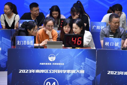 學習宣傳活動結束后,由區科協主辦、長生橋鎮人民政府、重慶市長生橋中學承辦的2023年南岸區公民科學素質大賽在此舉行。來自我區13個鎮街的參賽隊伍比拼科學知識,共掀科普熱潮。