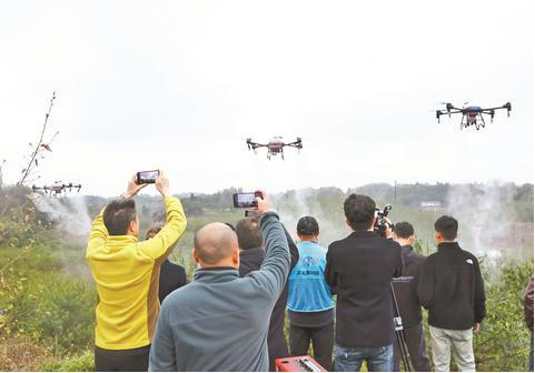 3月21日,江津區農技協聯合會在石蟆鎮天旗村優質(出口)花椒基地開展花椒無人機飛防宣傳展示活動,50余名花椒種植戶代表參加。
