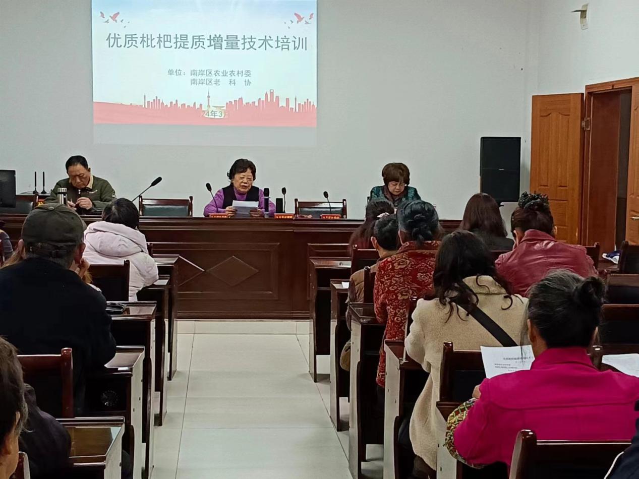 在枇杷生長的關鍵時期,為提高枇杷品質(zhì)和產(chǎn)量,3月18日至20日,南岸區(qū)科協(xié)、南岸區(qū)老科協(xié)會同區(qū)農(nóng)委專家,連續(xù)三天前往廣陽鎮(zhèn)銀湖村、迎龍鎮(zhèn)清油洞村和峽口鎮(zhèn)大石村開展優(yōu)質(zhì)枇杷提質(zhì)增量技術培訓。
