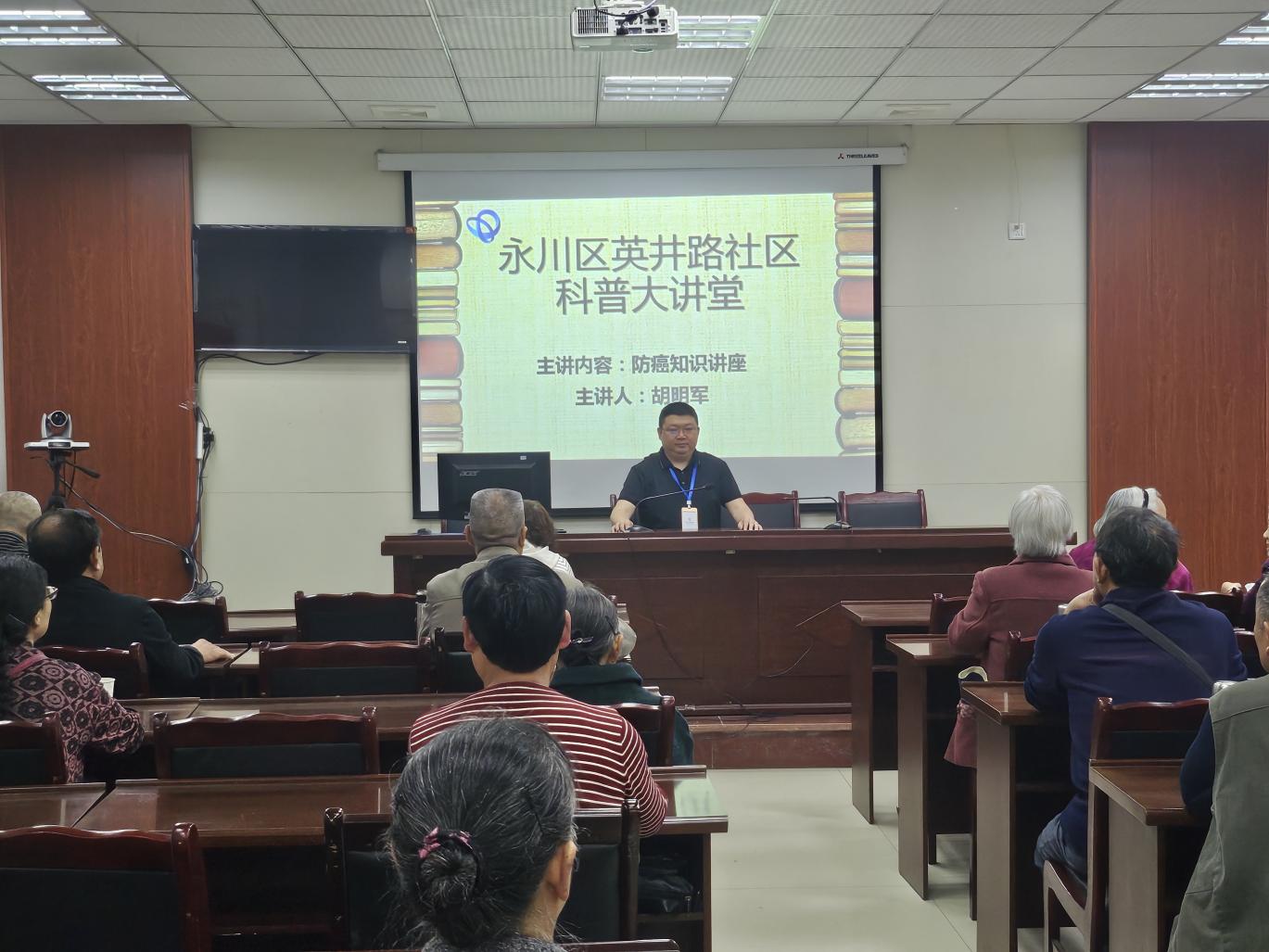 4月2日,永川區(qū)科協(xié)科普大講堂活動(dòng)走進(jìn)英井路社區(qū),活動(dòng)特邀重慶中新腫瘤醫(yī)院胡明軍院長(zhǎng)作《腫瘤疾病與防治》科普講座。