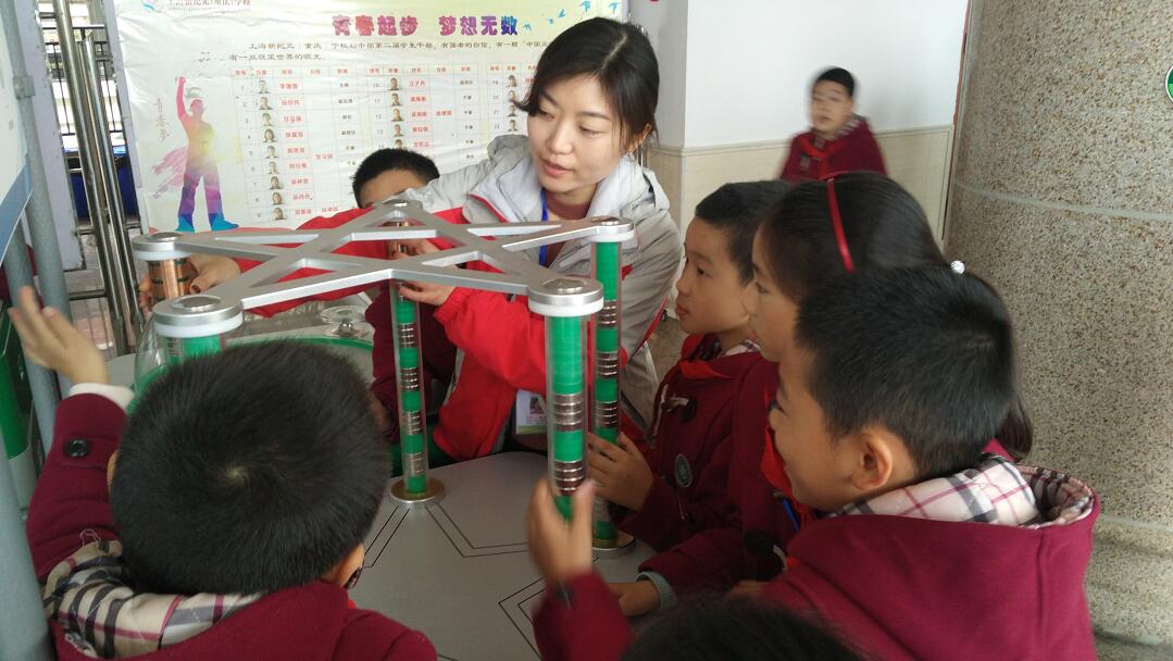 科技輔導員為同學們講解“磁阻尼”