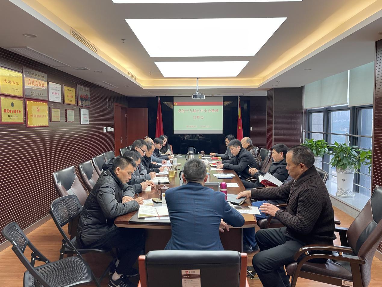 深入學習貫徹貫徹黨的十九屆五中全會精神,是當前和今后一個時期的重要政治任務。重慶消防協會根據重慶市城鄉建設行業綜合黨委安排部署,結合協會黨支部工作實際,于12月4日上午,組織召開了黨的十九屆五中全會精神宣貫會。宣貫會上,協會辦公室作全會主要精神宣講,原文學習了《中共中央關于制定國民經濟和社會發展第十四個五年規劃和二〇三五年遠景目標的建議》,黨員及協會員工結合協會工作職能、可持續發展和提高社會建設水平等內容作了討論發言。會議由書記蹇可銀主持,重慶市城鄉建設行業綜合黨委黨建工作指導員鄧吉偉出席了會議。