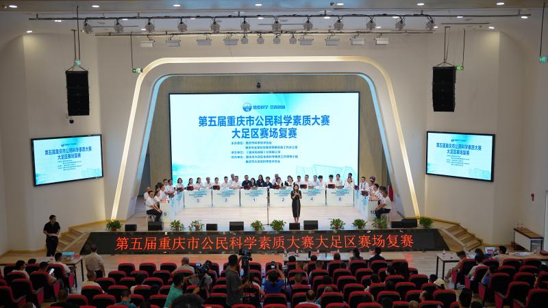 活動現場,來自大渡口區、渝北區、江津區、大足區、榮昌區、城口縣、奉節縣、石柱縣、彭水縣、萬盛經開區的10支參賽隊伍同臺競技,比賽分淘汰賽和晉級賽兩個階段進行,淘汰賽通過“科學聽我說”展演、必答和搶答題環節,決出5支隊伍進入晉級賽。晉級賽通過快問快答、搶答2個環節決出2支優勝隊伍晉級參加全市總決賽。