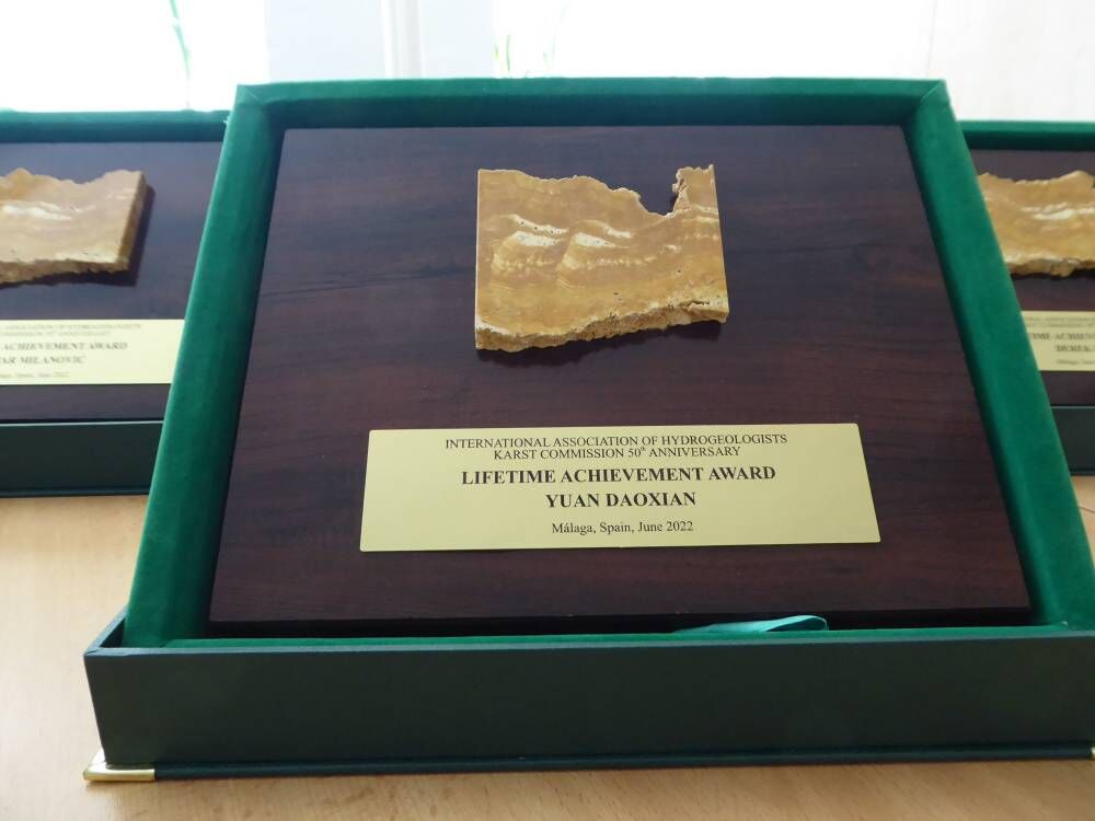 ▲袁道先院士獲得國際水文地質學家協會巖溶委員會“50年終身成就獎”。受訪單位供圖